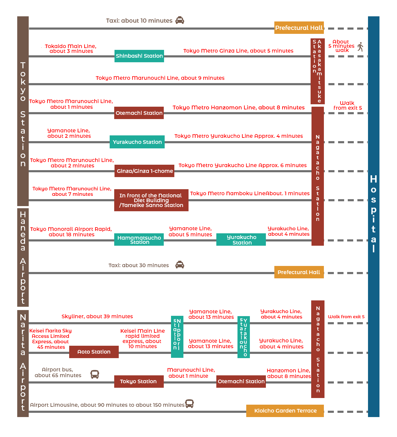 New Spine Clinic Tokyo is located in a prime location, directly connected to Nagatacho Station and a